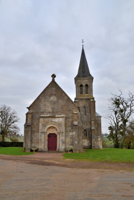 - L’église est épaulée par de nombreux contreforts. Son tympan représente le christ. Sur la terre de France, des milliers de chapelles et d’autels sont dédiés à ces 6 600 Soldats Martyrs.