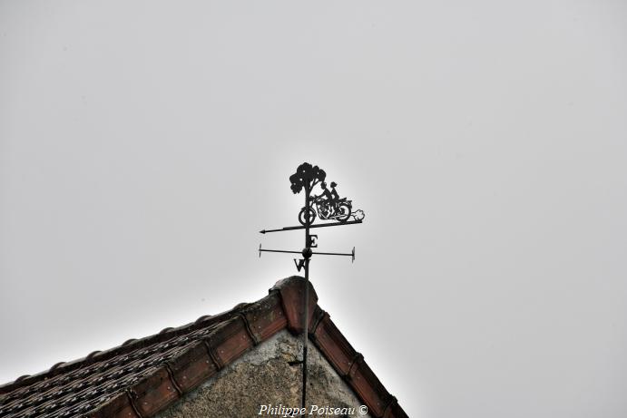 Cette girouette motocycliste est située au lieu-dit Le Maréchal, sur le toit d’une des maisons situées aux abords de la départementale 6. Une girouette représentant un couple, sur une motocyclette passant derrière un arbre, la fumée du pot d’échappement est aussi visible.