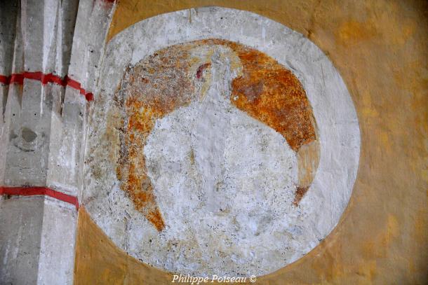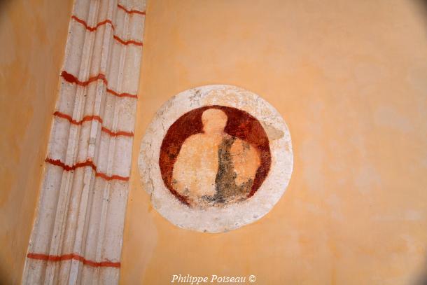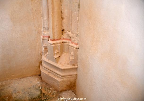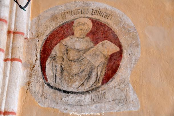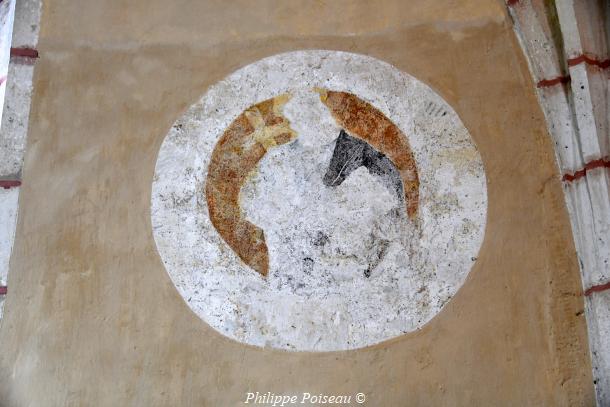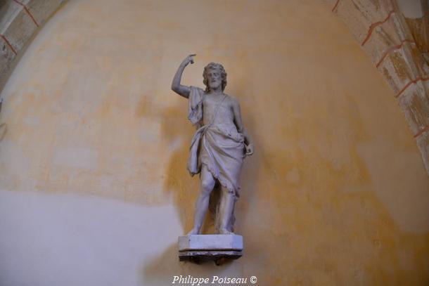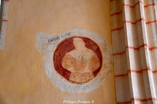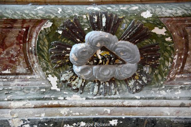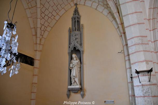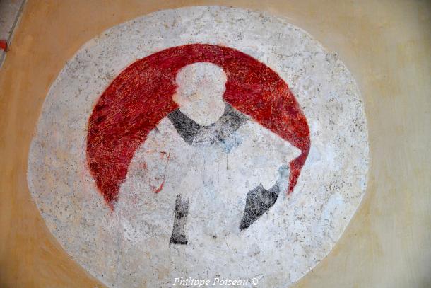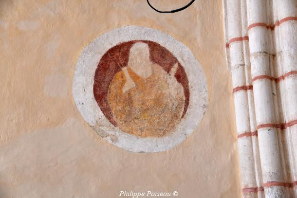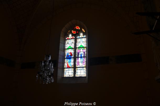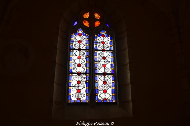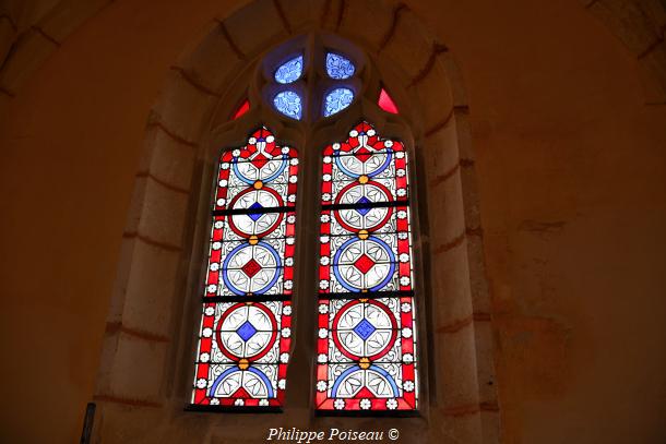 - Elle conserve de cette époque son vitrail d’axe, consacré à son saint patron, cette baie est d’une hauteur de 3 mètres pour une largeur de 1.40 mètre, inscrite à l’inventaire régional, Bourgogne CL FP 825813 X FP 825814 ZA.