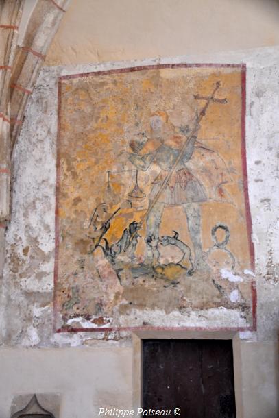 - Peinture murale dédiée à Saint-Jacques-de-Compostelle, Saint-Michel terrassant le dragon.