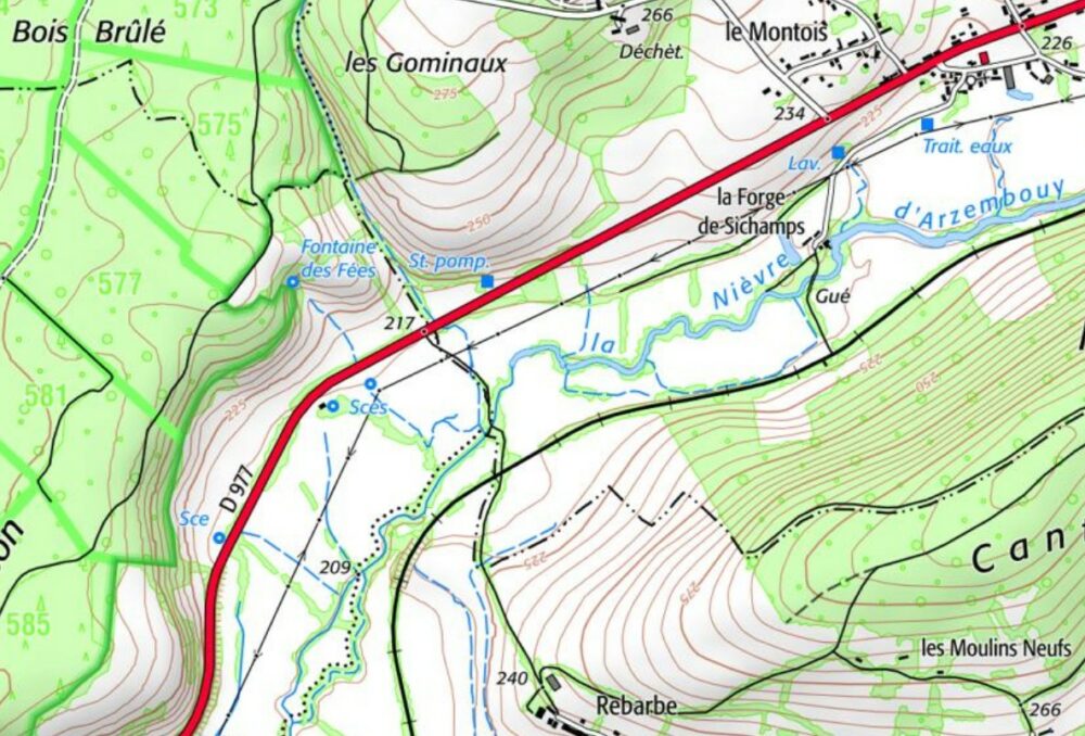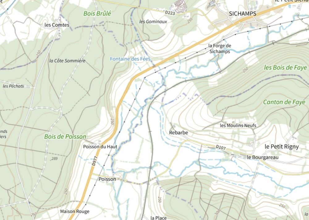 • La grotte des Fées de Poiseux, depuis Poiseux, suivre la départementalo 977 en direction de Sichamps, dépasser Thou, la ferme du Petit Poisson, laisser sur votre droite une station de pompage. Peu après, sur la gauche, on remarque un petit vallon au fond duquel coule un ru. Celui-ci est le meilleur guide pour arriver, au-delà des prés, jusqu’à la cavité.
