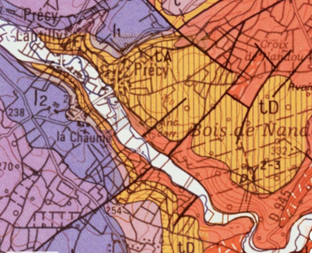 • À l’extrémité est des bois de Nandou, près de Précy, se trouvent les ruines du château médiéval de Paimpoirier. La Belle Pierre Baudiau 1867, t. II, p. 140 1867, ne mentionne pas cette Pierre « Chauffe-Cul ». La carte de Cassini (XVIIIe) ne mentionne aucun château ; sur le cadastre napoléonien, cette parcelle est appelée « le bois Ché ».