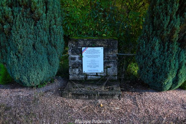 - Sur la stèle il est inscrit : » En ces lieux, dans la maison en haut du chemin, le premier Maquis de la Nièvre des Francs-Tireurs et Partisans Français s’est installé dans l’hiver 1942 – 43. Le 8 avril 1943, il est anéanti par les Forces de répression de Vichy aux ordres de l’occupant nazi. Composition Responsable Tecbnique Départemental André PIAUT Responsable Mililaire Departemental Justin MARQUEREAU En formation des Futurs Cadres ETPE Henri THOMET – Marcel HENRY Albert MICHOT – Marcel BEAUFILS – Marcel LAMBERT. Promeneur, souviens-toi il se sont battus pour ta liberté. »