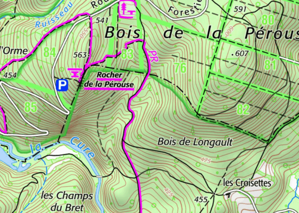 - Le Rocher de « La Pérouse » situé sur la limite des départements de la Nièvre et de l’Yonne. Un chaos granitique orienté légèrement Nord Nord-Est. Le rocher de la Pérouse est situé sur le massif du Morvan commune de Dun-les-Places.