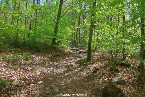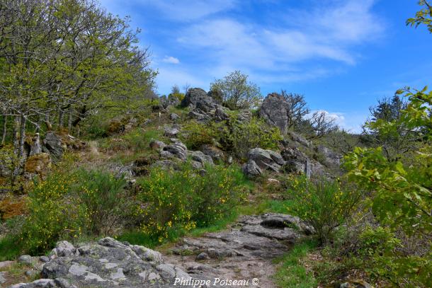 - Un chemin en sous-bois nous permet d’accéder à ce rocher. De belles pierres sont à observer.