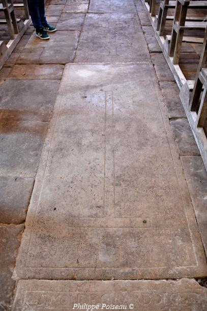 - Le sol est dallé en pierre calcaire, assez régulièrement pour les trois quarts occidentaux, irrégulièrement à l’est: cette zone correspond à l’emplacement du chœur architectural originel, simplement arasé.