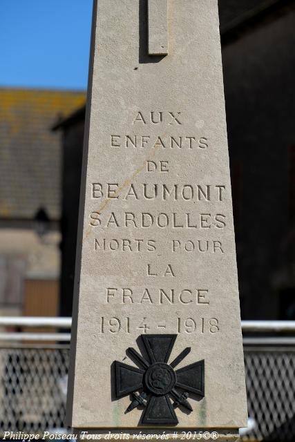 - Sur le monument il est inscrit: « AUX ENFANTS DE BEAUMONT SARDOLLES MORTS POUR LA FRANCE 1914-1918 ».