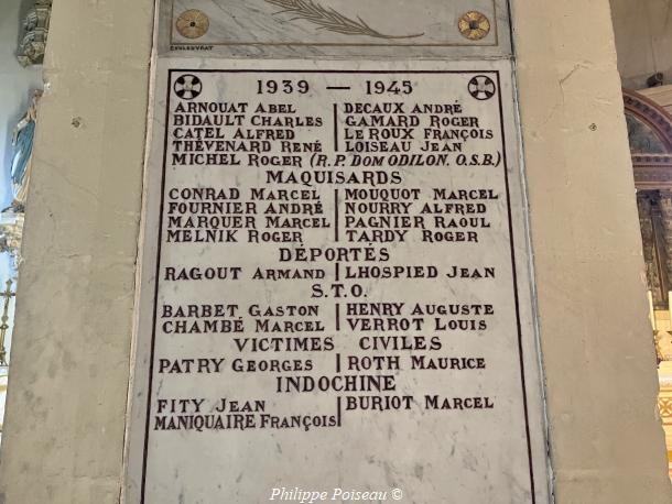 • Guerre d’Algérie: BEAUGÉ Michel – MICHEL Jean. Guerre d’Indochine: BURIOT Charles Marcel – DIVERRE Roger Emile – FITY Jean – MANIQUAIRE François Georges. S.T.O : BARBET Gaston CHAMBET Marcel HENRY Auguste VERROT Louis. Victime civil : ROTH Maurice Patry Georges. MAQUISARDS: CONRAD Marcel FOURNIER André MARQUER Marcel MELNICK Roger MOUQUOT Marcel NOURRY Alfred PAGNIER Raoul RAGOUT Armand TARDY Roger. S.T. 0.: BARBET GASTON – HENRY AUGUSTE – CHAMBE MARCEL – VERROT LOUIS. Déportés : RAGOUT ARMAND – LHOSPIED JEAN. Victimes Civils: PATRY GEORGES – ROTH MAURICE.