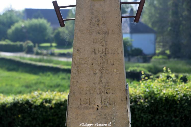 - Le monument aux morts de Saint-Aubin-les-Forges est situé devant la Mairie située rue de l’école. C’est un pilier commémoratif représenté par un obélisque sur socle, réalisé en pierre de Juvigny. Sur le monument il est inscrit: » AUX ENFANTS DE ST AUBIN LES FORGES MORTS POUR LA FRANCE 1914-1918 « .