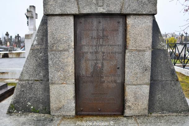 - Sur la porte de sa sépulture, il est noté : » Barthélémy Louis Joseph Badouix, officier de la légion d’honneur, préfet du département de la Nièvre MDCCCXXXI – MDCCCXL À l’administrateur dévoué au pays, monument de la piété publique et des regrets communs.