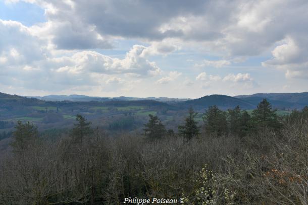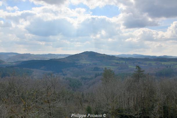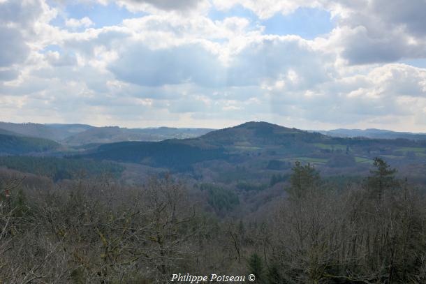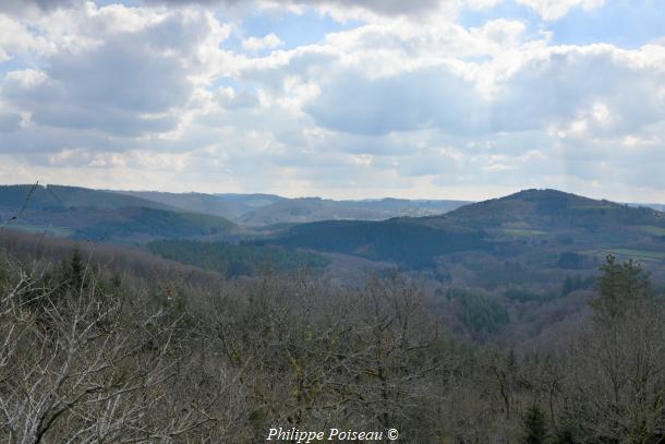 - La vue s’étend sur les massifs boisés de la forêt domaniale de Breuil Chenue et les terres de la commune de Dun-les-Places. Un panorama, un gros plan sur le paysage caractéristique de cette région du Morvan.