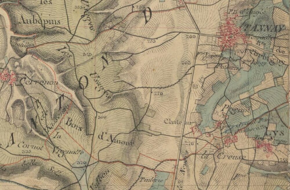 - Les Pierres du Bois d’amont, les trois menhirs de Cervenon ? sont ils liès ? . Dans le Bulletin de la Société Préhistorique Française, Antoine Desforges signale sur la commune de Tannay un tumulus de l’Age du Bronze situé au centre d’un triangle formé par les villages de Tannay, Grenois et St-Germain. En bordure est du chemin des Morvandiaux du bois d’Amont.