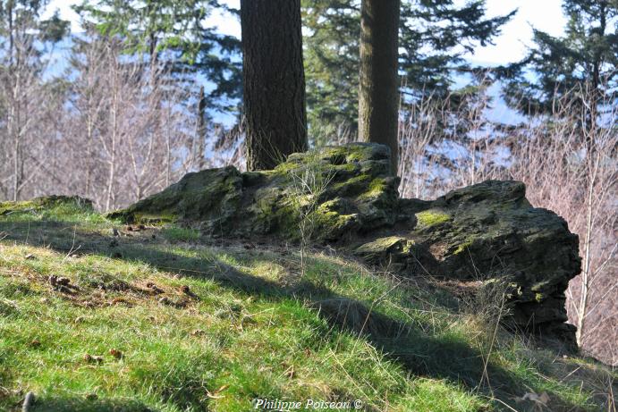 - La Roche du Pas de l’âne de Larochemillay est située dans la forêt de sapins, au nord-ouest du hameau de Montaudué. Nous y sommes parvenus en passant par la départementale 274 depuis le Mont Beuvray.