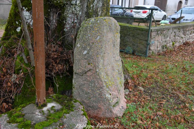 - Une croix en bois de couleur marron à été placée à côté de la stèle, la christianisation des lieux de culte païens. (croix citée page 184 du Nivernois Tome II.).
