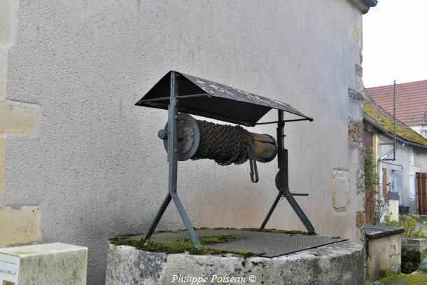 - Ce puits d’Asnois est situé au croisement de la rue de l’église et de la rue Tournante. Un haut puits, réalisé en moellon et pierre de taille. Son mécanisme en métal protégé par un petit toit en tôle porte son mécanisme de relevage, constitué d’un tambour en bois de chêne, maintenu par un axe manivelle. Sa chaîne de relevage est encore en place.